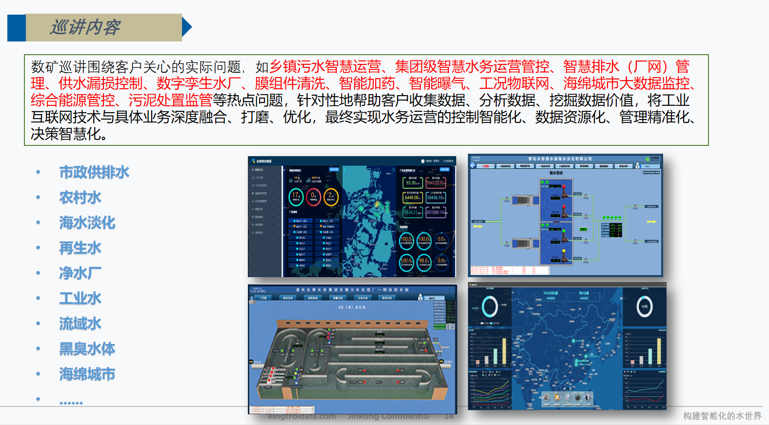 金控?cái)?shù)據(jù)專注于智慧水務(wù),提供從監(jiān)測設(shè)備到軟件的全面解決方案,以"數(shù)礦"平臺為核心,實(shí)現(xiàn)水務(wù)智能化管理和運(yùn)維服務(wù),助力水務(wù)行業(yè)數(shù)字化轉(zhuǎn)型。