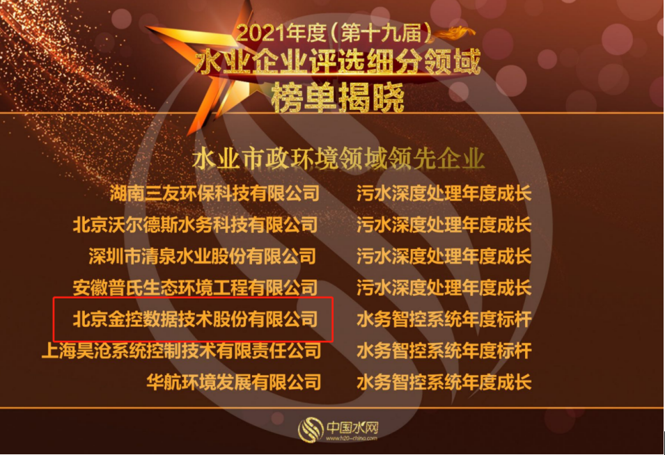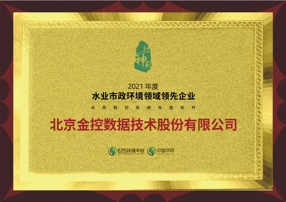 金控?cái)?shù)據(jù)榮膺“2021水務(wù)智控系統(tǒng)年度標(biāo)桿”
