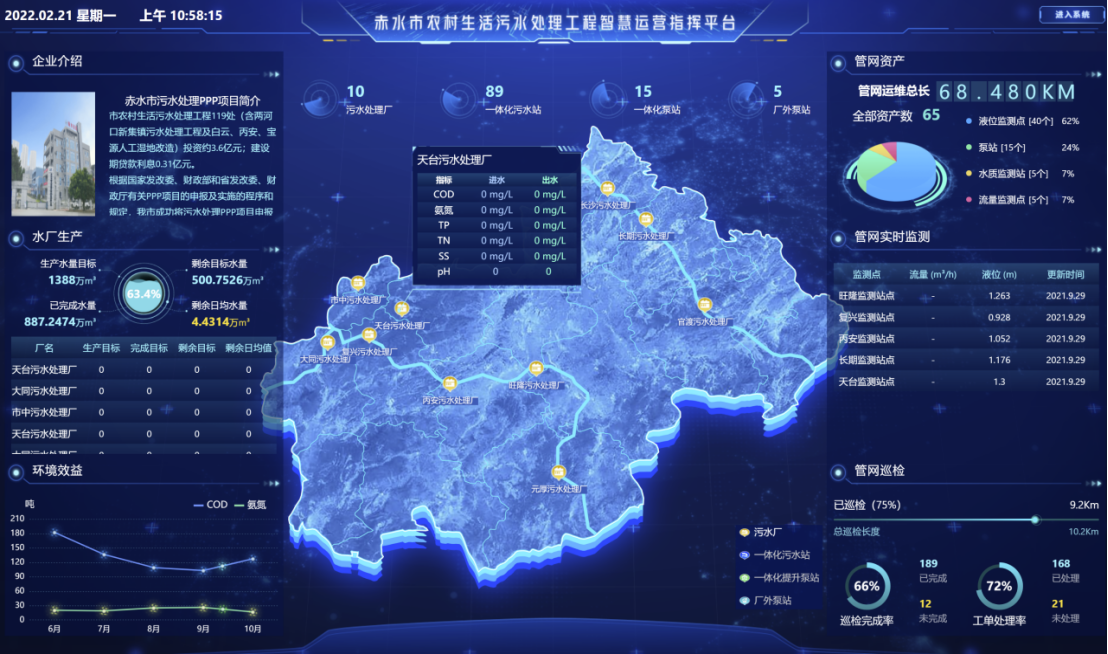《赤水市農(nóng)村生活污水處理工程智慧運(yùn)營(yíng)指揮平臺(tái)項(xiàng)目》是赤水市水務(wù)局與赤水市碧水清源環(huán)境科技有限公司打造的重點(diǎn)項(xiàng)目之一。該項(xiàng)目以政策為導(dǎo)向,以企業(yè)數(shù)字化轉(zhuǎn)型發(fā)展為契機(jī),通過政府監(jiān)管+企業(yè)建設(shè)的模式,充分發(fā)揮了政府部門的行業(yè)監(jiān)管作用,激發(fā)了企業(yè)發(fā)展的活力,共同促進(jìn)了城市水務(wù)工作的高效開展,提高了水務(wù)工作效率,有力推動(dòng)了城市生態(tài)文明建設(shè)。